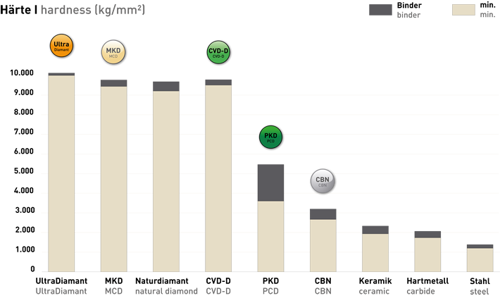 Im Vergleich zu PKD zeichnet sich CBN außerdem durch seine chemische Resistenz gegenüber eisenhaltigen Werkstoffen aus.